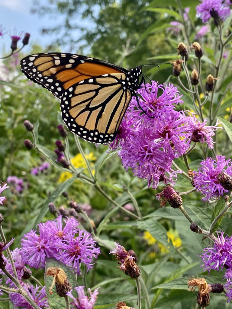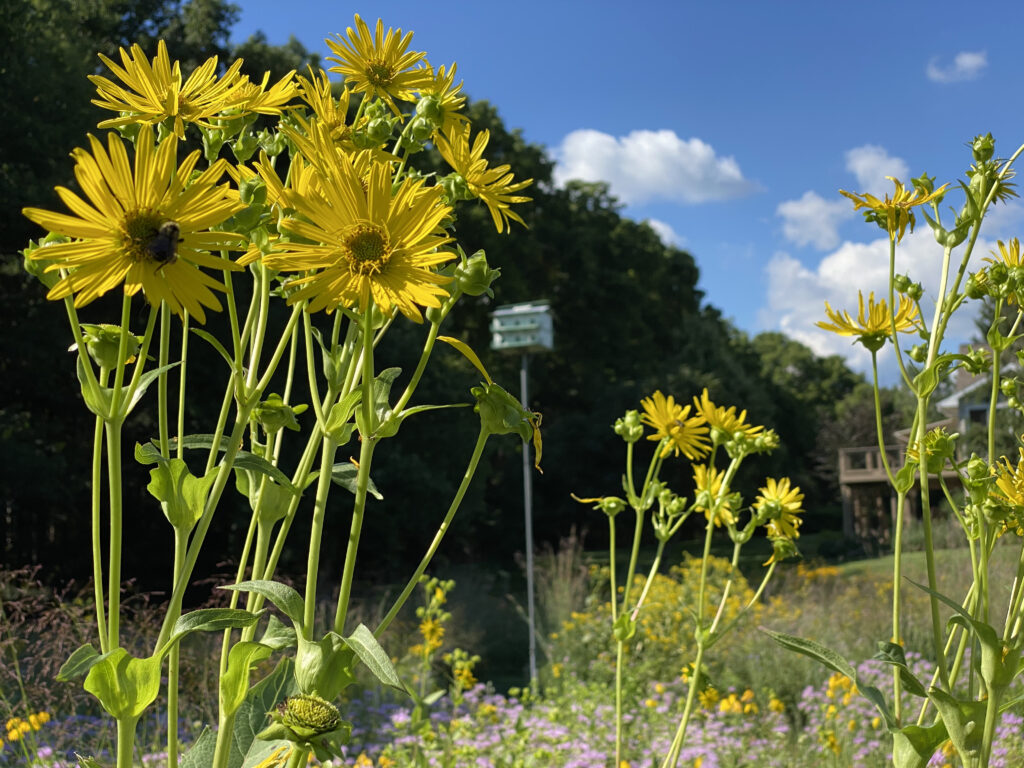 The importance of native plants was brought to my attention when I attended the Kent MSUE Master Naturalist program. After my certification in 2003, I was on a mission to convert my ½ acre side yard into a prairie. I did research, and in 2004 my husband and I removed invasives and prepared a 40×70 feet section for planting with native seed and plugs. The area also incorporated a rain garden using runoff from the roof of my house.
