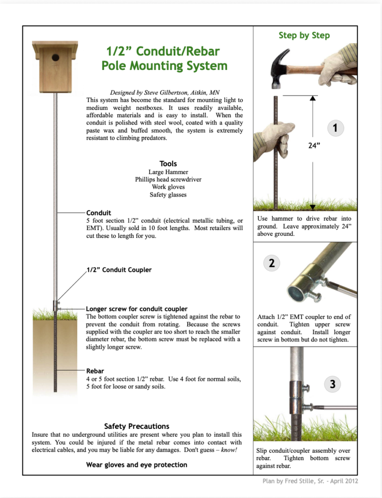 Bluebird box 1/2″ conduit/rebar pole mounting system