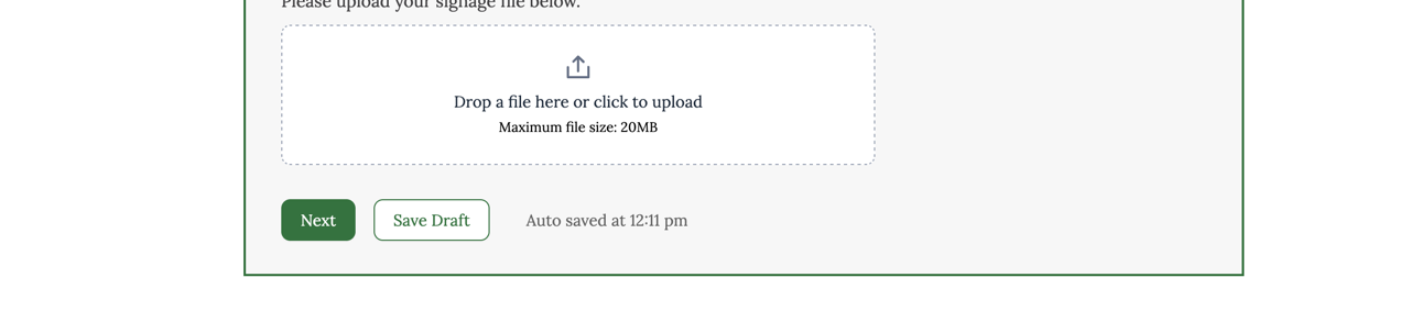 You do not have to complete the entire application at one time. However, if you want to complete the application in stages you mustfollow these steps. Scroll down to the bottom of the form and click on Save Draft (see the image below):
